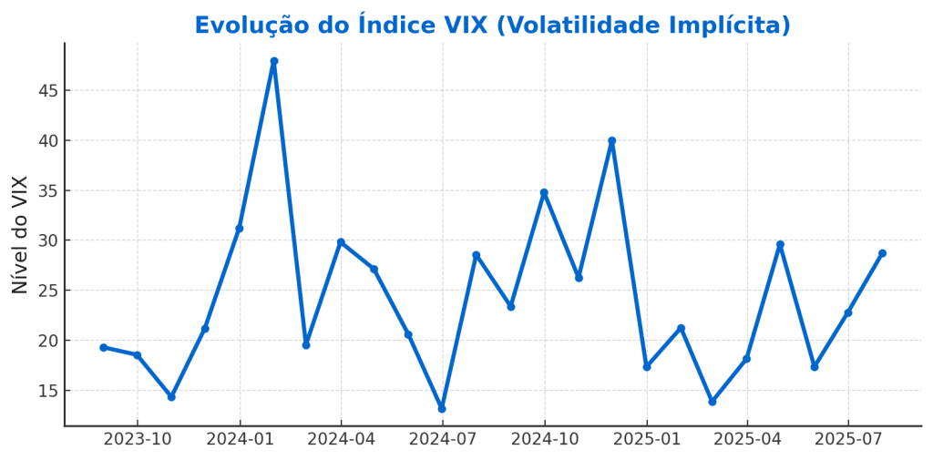 O VIX é amplamente considerado o “termômetro do medo” de Wall Street. Movimentos bruscos para cima tendem a coincidir com momentos de incerteza e queda nas bolsas, enquanto recuos indicam maior complacência dos investidores. Para traders de opções, picos no VIX podem sinalizar bons momentos para vender volatilidade (estratégias como credit spreads) ou buscar ganhos com operações que se beneficiem de grandes movimentos de preço (straddles e strangles).