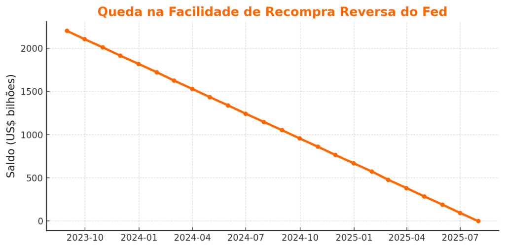 sinalizando redução da liquidez de curto prazo. 📊 Fonte: Federal Reserve